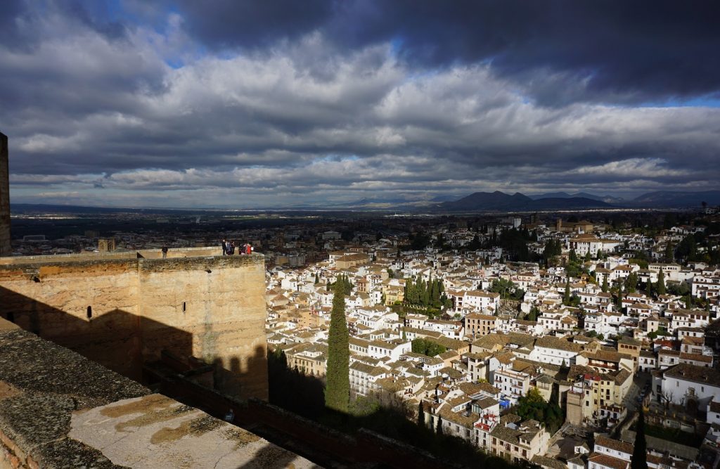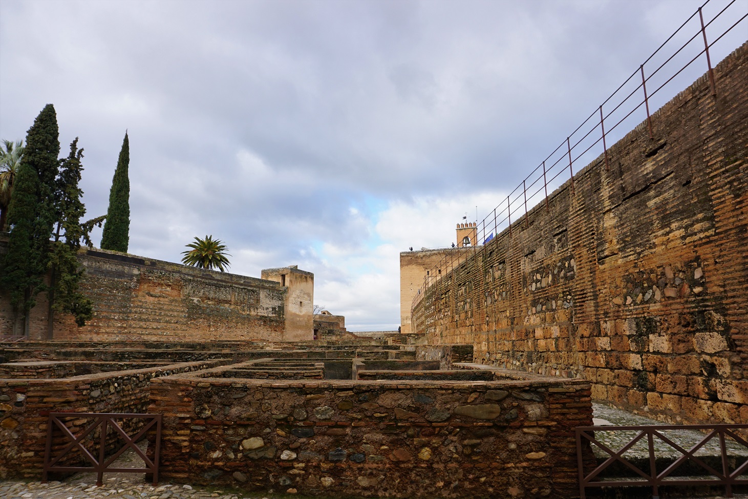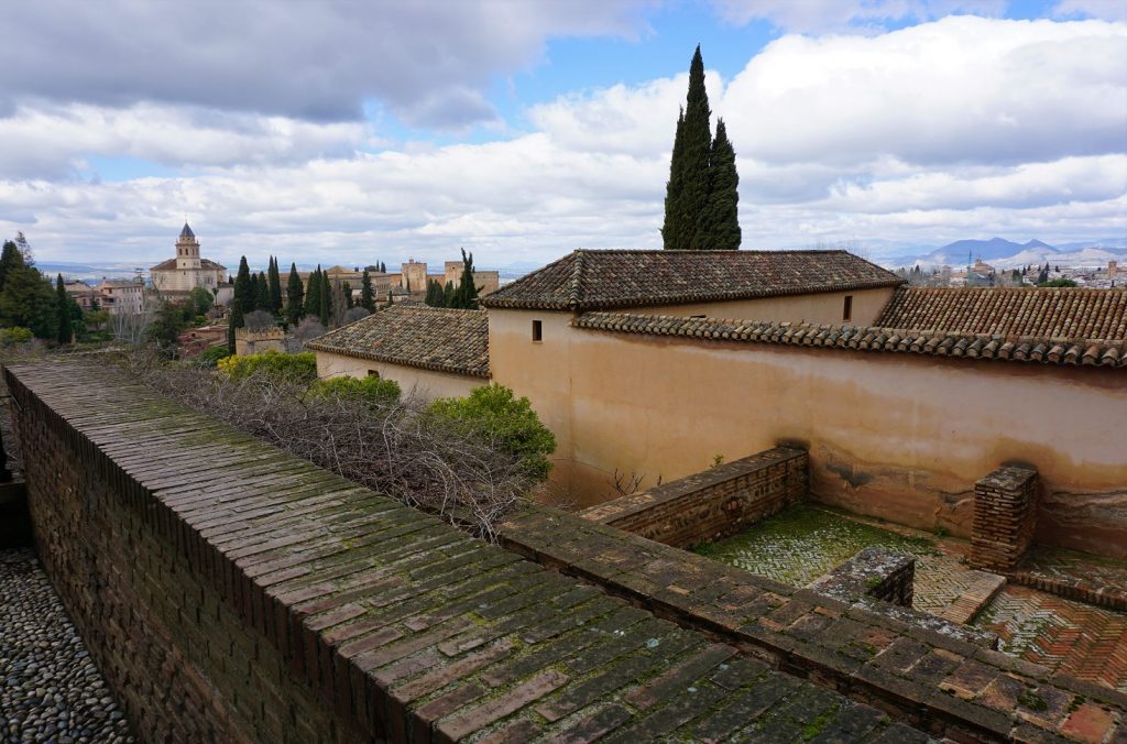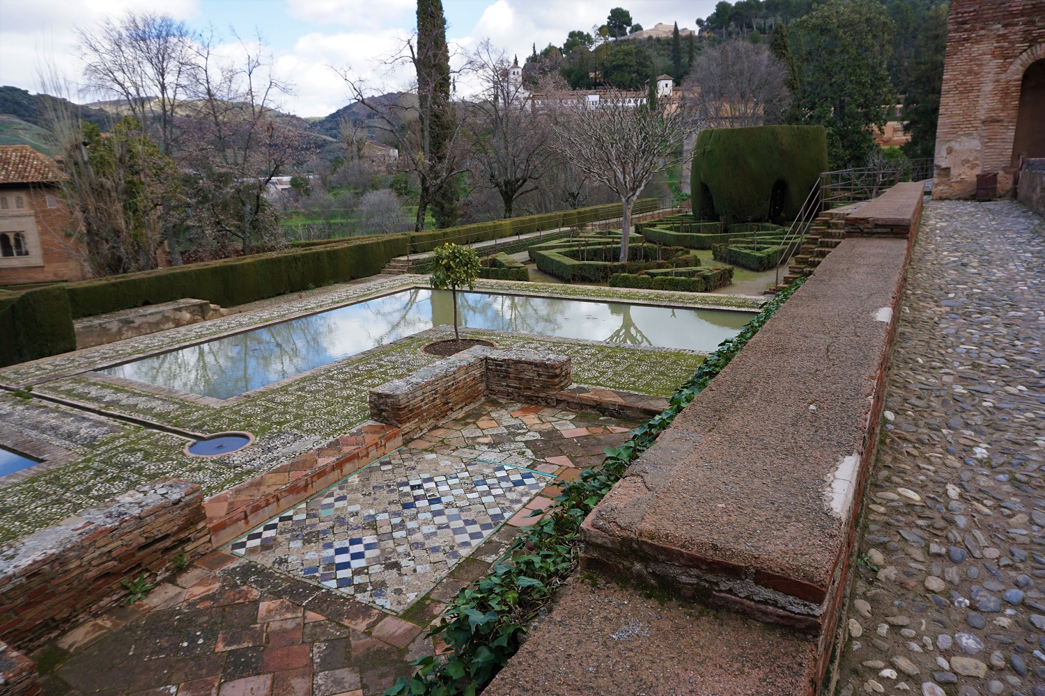 Let me get this out of the way first. Yes, there were hordes and yes there was weather. Cold weather as in really, really cold. Like it snowed later, I kid you not. And the Alhambra is an outdoor attraction. It was worth it though. A truly amazing place; it is immense. The palaces, terraces, and gardens built in the 1200 and 1300’s by the founder of the Nasrid dynasty, the Alhambra, literally meaning ‘red castle’, is a stunning architectural masterpiece sitting atop a hill overlooking Granada. That the initial castle/fortress, the Alcazaba, was built 400 years before the palaces is even more impressive. That’s like, 1200 years old! Over the centuries it became more integrated and today the public (AKA hordes) can roam over this vast area of roughly 35 acres.