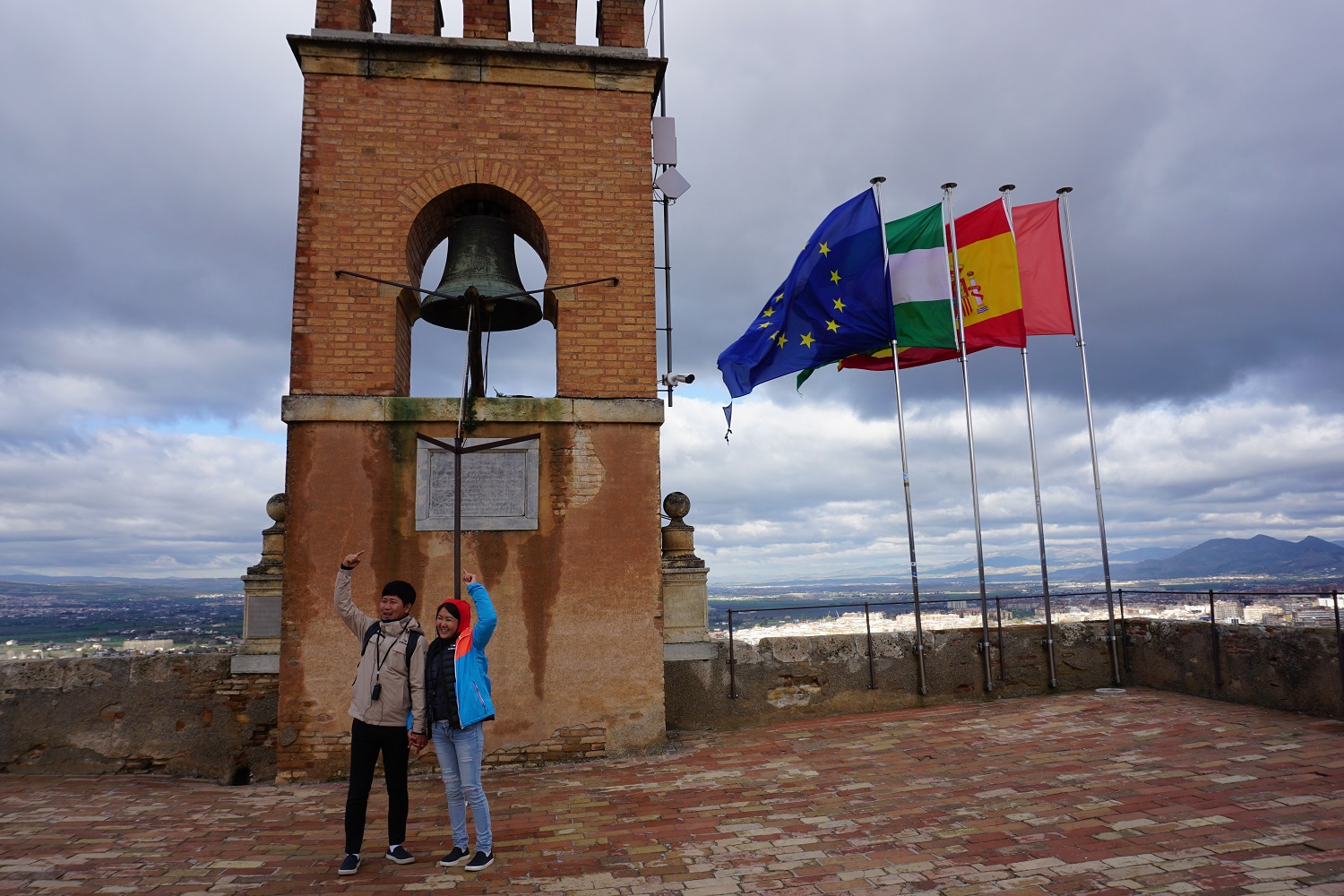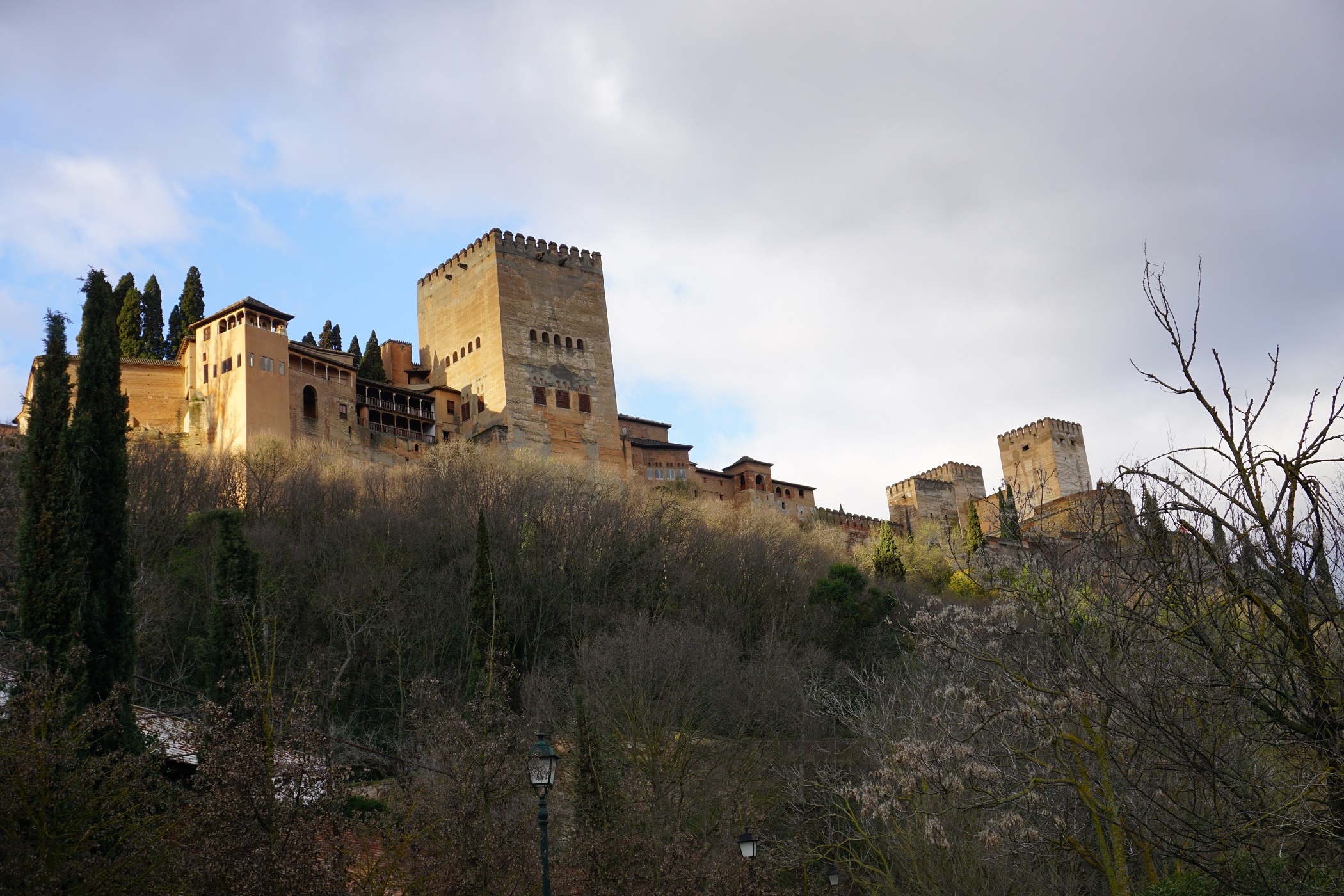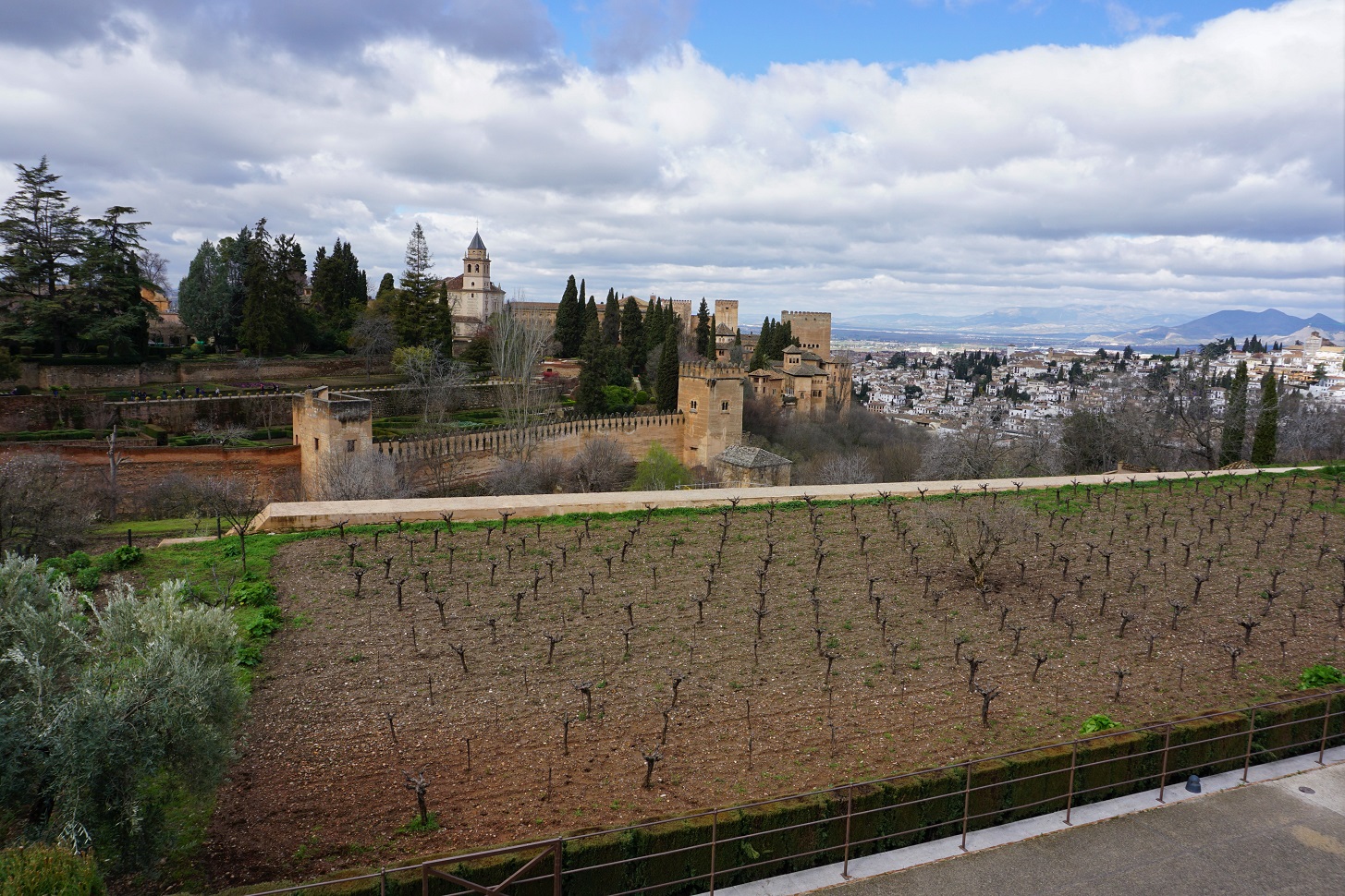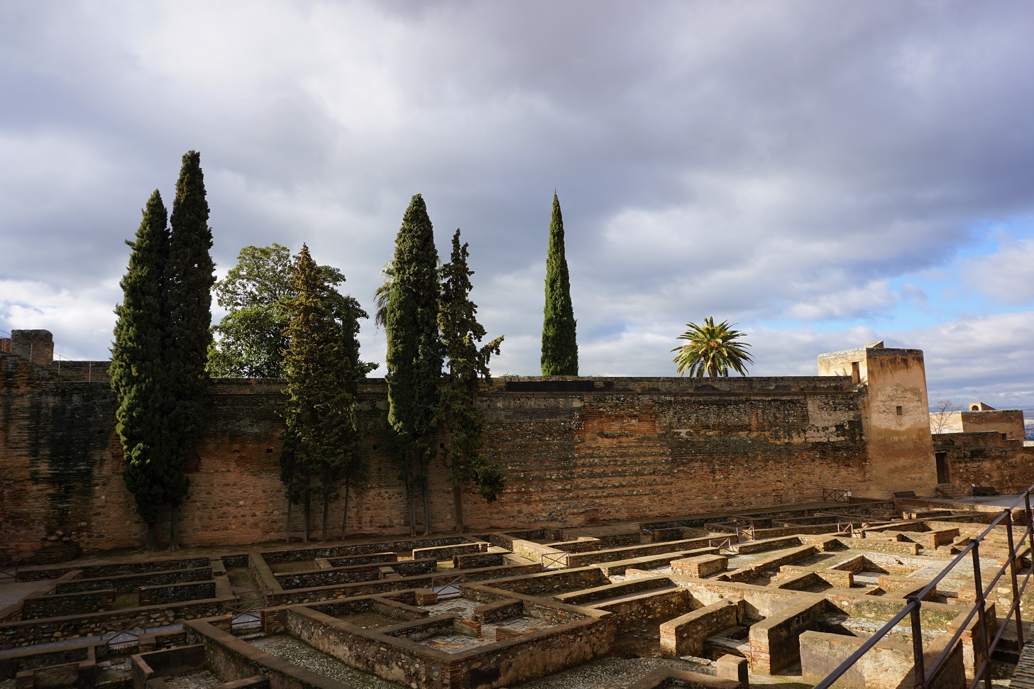 Let me get this out of the way first. Yes, there were hordes and yes there was weather. Cold weather as in really, really cold. Like it snowed later, I kid you not. And the Alhambra is an outdoor attraction. It was worth it though. A truly amazing place; it is immense. The palaces, terraces, and gardens built in the 1200 and 1300’s by the founder of the Nasrid dynasty, the Alhambra, literally meaning ‘red castle’, is a stunning architectural masterpiece sitting atop a hill overlooking Granada. That the initial castle/fortress, the Alcazaba, was built 400 years before the palaces is even more impressive. That’s like, 1200 years old! Over the centuries it became more integrated and today the public (AKA hordes) can roam over this vast area of roughly 35 acres.