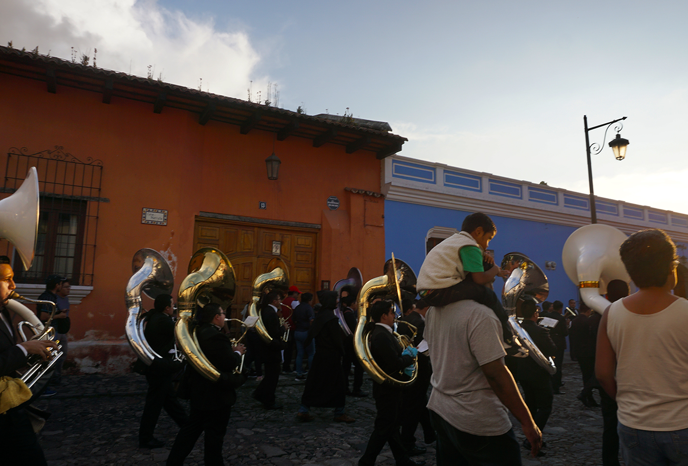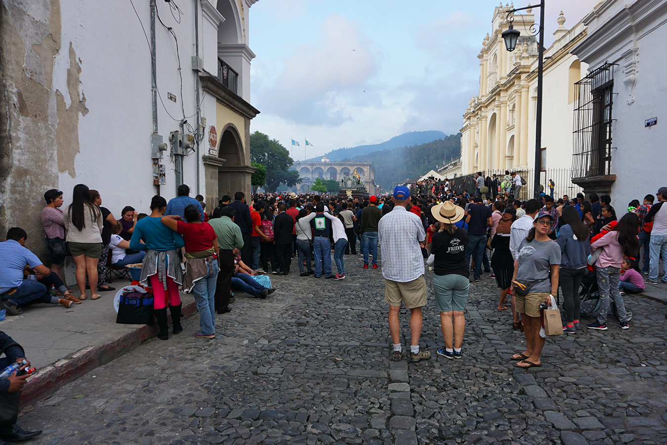 On the way back from the large kite festival we got off our shuttle bus early. As it wound through the congested streets of Antigua, the crowds became very thick and finally we stopped. It didn’t look like we were going anyway anytime soon so we got off to walk the final 1.5km home. It became immediately apparent why we got stopped though. We had run smack dab into a parade of sorts and most of the central core was completely blocked.