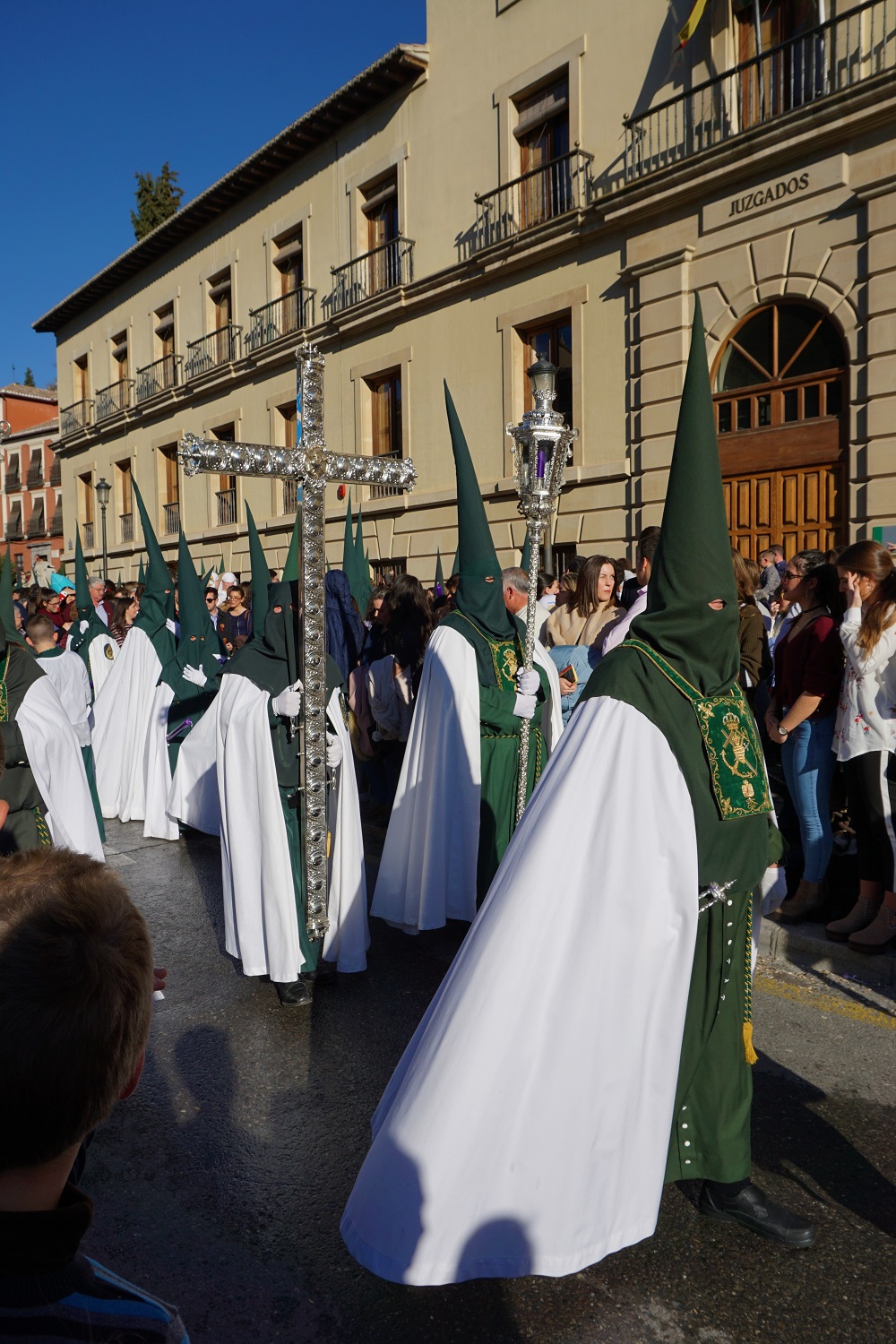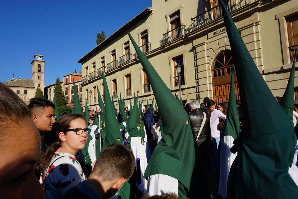 The religious procession was a bonus for us; we just happened to be in the right place at the right time.  We don’t check the internet for weird and wonderful things to do here daily, so this was a plus. We are not all that religious but the ‘parade’ was very stirring.  As I said earlier it’s holy week, Semana Santa.  This is appropriate as a description of the procession and for those not familiar (and please don’t think I am being disrespectful), it is like Macy’s Santa parade merged with a Klan rally.  There are a number of religious ‘floats’ (Christ carrying the cross and so forth) surrounded by marching bands, numerous ‘widows’ dressed in black all interspersed with guys in pointy hoods.  If the hooded guys were all in white as opposed to an array of beautiful colors, it would definitely look like a Klan rally.  And the floats weren’t on flatbed trucks either; they were carried!  Here are these large platforms made of what looks like solid silver with an assortment of Christ figurines and underneath for mobility are a bunch of young men walking them through the streets.  It was quite magical and if you were a religious person I can see how moving this would be.  Throngs of people lined the streets for this.