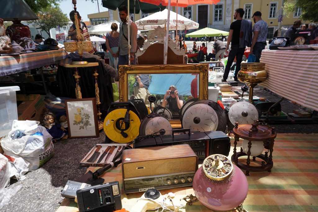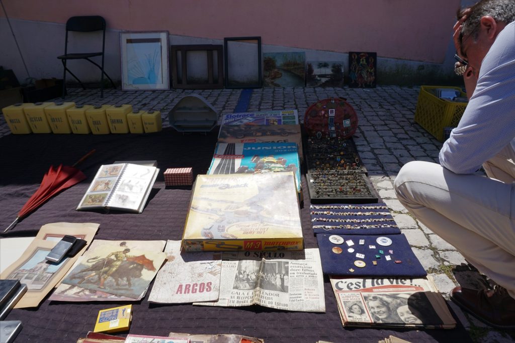 I’m not a flea market kind of guy but Teresa likes to poke around these places for ‘deals’.  It was, as I said interesting, and it was large as street markets go, covering several city blocks.  I didn’t see much in the way of deals, but I did see a lot of junk.  Who buys this stuff?  But I guess if you are needing that one item you’ve been looking for, for years, then you might come here in hopes of finding it.  Besides the usual flea market stuff, t-shirts, leather belts, and Jackets; an old book or LP perhaps, or maybe some colorful scarfs and a copper bracelet or two.  Or you might be interested in old sardine cans (sardine things of any sort being a big item in Lisbon), stamps, coins, and for you Nazi aficionados, that ceremonial SS dagger looks pretty cool.  There are some nice ceramics, pottery items, and some art strewn about, but you need wade your way through many bins of plastic baubles and rubber ducks.
