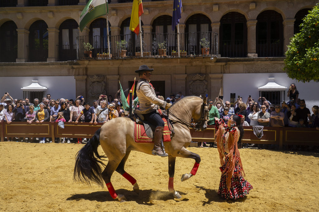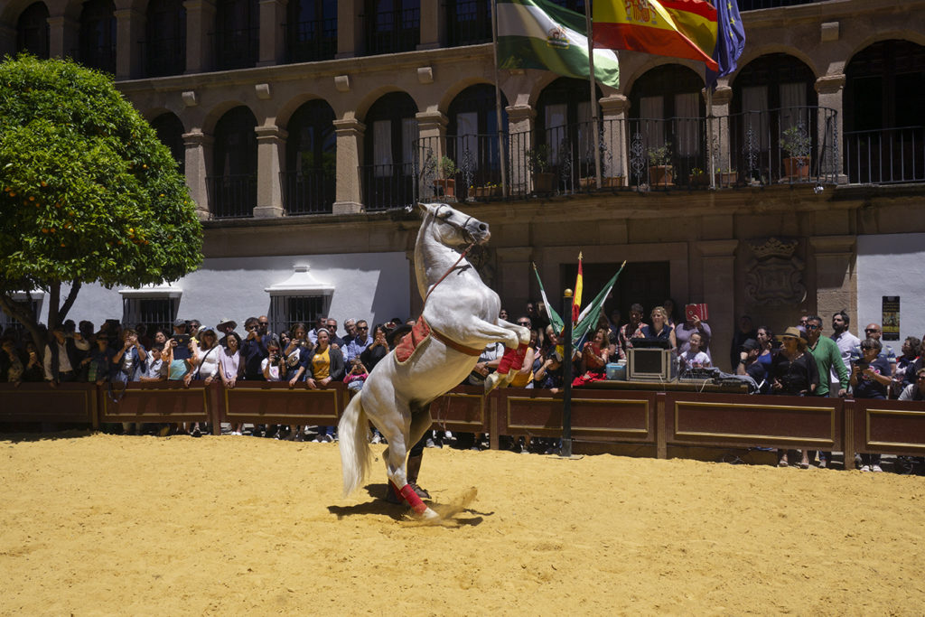 As part of the Romantica festival, we took in some more Art of the Andalusian Horse on the final day. The event was free, and we had front row seats, minus the seats. It was in an open area plaza next to the old cathedral and there were a LOT of people wanting to see this. The hour-long show was a showcase of dressage moves with the odd flamenco artist dancing with the horses. It was similar to the one we saw in Cordoba last year but it’s always a treat to see this and we weren’t disappointed. Enjoy the photos